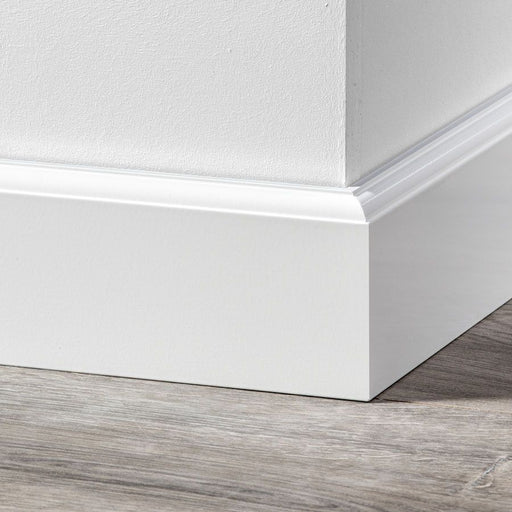 | /Deze zeer populaire hoge kraalplint, reeds gelakt in RAL9010 (fris wit), heeft een subtiele kraalvormige ronding aan de bovenzijde en past uitsteke...