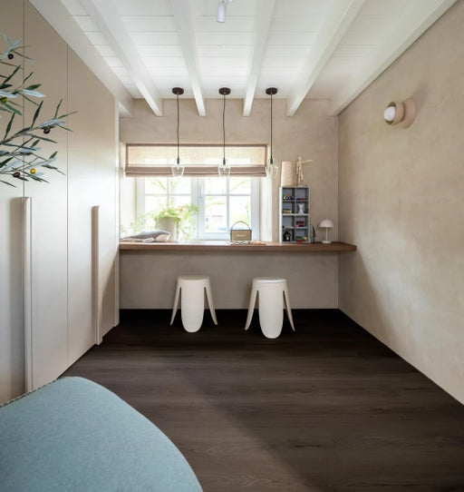 > Donkere houtlook PVC vloer